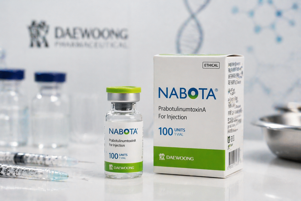 Nabota is manufactured by Daewoong Pharmaceutical Co., Ltd., a South Korean biopharmaceutical company with over 30 years of experience in biotechnology. The neurotoxin production center is located in Seongnam, Gyeonggi Province. The product is available in 100-unit and 200-unit vials.